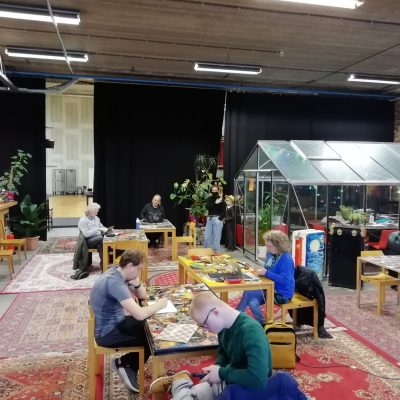 De spelers volgen in de Beeldentuin gezamenlijk een jaarprogramma bestaande uit 1 dagdeel. We werken aan kunstzinnige vaardigheden, expressie en samenwerken.